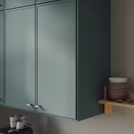 Тонкая изящная рамка фасадов ASPUDDEN подчёркивает минималистичный характер кухни — выглядит сдержанно, но с акцентом, и не выходит из моды.