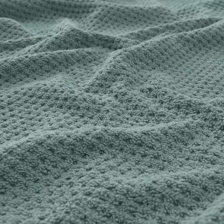 Мягкое и пушистое бирюзовое полотенце ГУЛВИАЛ средней толщины (плотность 500 г/м²) изготовлено из хлопка, обладает прочностью и хорошо впитывает влагу.