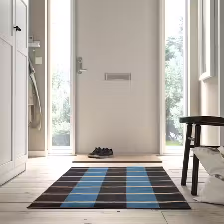 короткий ворс - серый синий/клетка 80x150 см