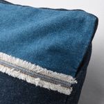 Чехол на подушку сделан из обрезков джинсовой ткани — трех разных цветов с одной стороны и однотонной темно-синей ткани с другой.