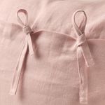 Завязки на обратной стороне придают особую выразительность льняному чехлу. Передняя сторона гладкая. Подушку можно перевернуть, и она будет выглядеть по-другому. Актуальный дизайн придаст романтический штрих интерьеру.