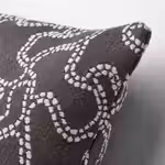 Антрацитовый чехол на подушку ГУЛЬДФЛИ из жаккардовой фактурной ткани украшен выразительным тактильным кремовым орнаментом.