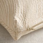 Бежевый чехол на подушку ЭТТЕГРАН украшен вдохновленным природой орнаментом, напоминающим листья под микроскопом.