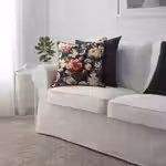 Подушка с чехлом с цветочным орнаментом гармонично Дополнительная диван или кресло ЭКТОРП с обивкой из такой же ткани.