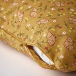 Освежите интерьер гостиной и спальни цветочным орнаментом. В комплекте два чехла на подушку из хлопковой ткани, украшенные разными орнаментами из цветов ипомеи на темно-желтом фоне.