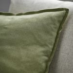Чехол на подушку ЛАГЕРПОППЭЛЬ серо-зеленого цвета с текстурированной поверхностью, матовым блеском и окантовкой, которая подчеркивает стиль и сохраняет форму подушки.