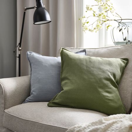 Чехол на подушку ЛАГЕРПОППЭЛЬ светло-розового цвета с текстурированной поверхностью, матовым блеском и окантовкой, которая подчеркивает стиль и сохраняет форму подушки.