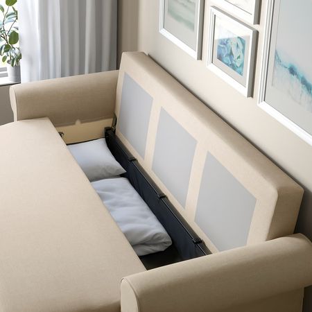 Тогда вам может понравиться диван-кровать DÅNHULT с упругими пружинами карманного типа в подушках сиденья и пространством для постельного белья внутри.