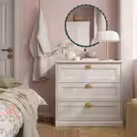 Это очаровательное зеркало с волнистым краем делает каждый взгляд особенным — и идеально сочетается с полкой из этой же серии.