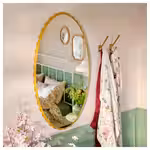 Это очаровательное зеркало с волнистым краем делает каждый взгляд особенным — и идеально сочетается с полкой из этой же серии.