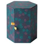 Три отделения для хранения различных мелочей. Благодаря магнитному замку коробка не откроется, если опрокинется. Комбинируется с другими товарами серий ФЬЕЛЛА и АНИЛИНАРЕ. Высота: 16 см. Диаметр: 14 см.