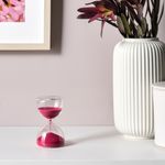 Декоративная альтернатива современным часам. Сквозь прозрачное стекло виден медленно сыплющийся вниз розовый песок, а при повороте песочных часов слышно, как первые песчинки падают на дно.