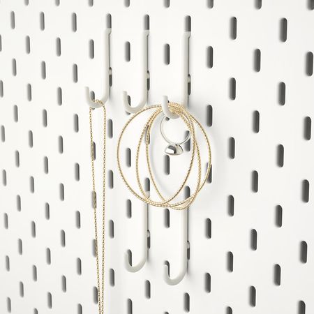 Настенная панель с аксессуарами СКОДИС помогает навести порядок и быстро находить нужные вещи.