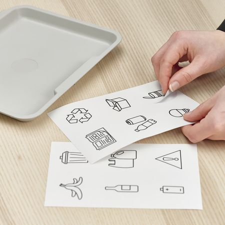 Размер наклеек подходит для контейнеров для сортировки отходов, таких как SORTERA, TRÖSKNING и HÅLLBAR, но, конечно, их можно наклеить на любой контейнер.
