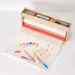 В этом держателе можно закрепить рулон бумаги для рисования, а также найдется место для фломастеров и карандашей.