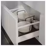 Удерживает тарелки на месте, защищая от сколов и ударов при открывании и закрывании ящиков.