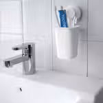 Закрепив держатель для зубных щеток на стене, вам будет проще поддерживать чистоту раковины.