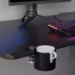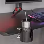 Держатель легко закрепить на столешнице, чтобы бодрящий напиток был под рукой во время игры и при этом на безопасном расстоянии от клавиатуры и мыши Практичное решение, чтобы во время игры не пролить любимый напиток на клавиатуру и мышку.
