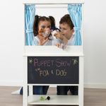 С одной стороны — это оснащенная всем необходимы кухня, а на доске с обратной стороны можно мелом написать меню дня или программу вечернего кукольного спектакля.