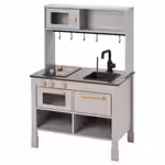 С игрушечными овощами, кухонными принадлежностями и кастрюльками (продаются отдельно) играть будет ещё интереснее.