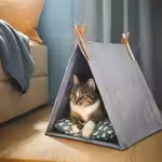 Компактный и уютный домик в форме палатки, где ваша кошка сможет отдохнуть и хорошо выспаться.