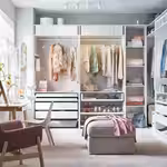 Если вы хотите дополнить каркас гардероба ПАКС раздвижными дверьми, высота потолка должна быть минимум 205 см.