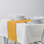 Дорожка защищает поверхность стола и украшает сервировку, создавая располагающую атмосферу.