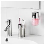 Можно повесить на стену с помощью держателя дозатора для жидкого мыла серии КАЛЬКГРУНД.