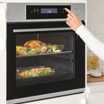 Бесплатно 5 лет гарантии. Подробнее об условиях гарантии — в Гарантийной брошюре. Комбинация функции приготовления на пару и функции "горячий воздух" обеспечивает оптимальный уровень влажности и нагревания, благодаря чему блюдо получается внутри сочным и мягким, а снаружи — хрустящим и золотистым. Конвекция – быстрое и равномерное распределение горячего воздуха, что позволяет одновременно готовить различные блюда без смешения ароматов. Благодаря двум комплектам полностью выдвигающихся телескопических направляющих ставить блюдо в духовку и доставать его после приготовления будет удобно и безопасно. Интегрированный термометр с температурным дисплеем обеспечивает оптимальный контроль приготовления любого вида мяса. Предварительно заданные программы приготовления позволяют выбрать правильные настройки для разных рецептов и продуктов. Вы можете хранить свои любимые рецепты в памяти духовки, указывая также температуру и время приготовления для каждого блюда. Очень большая духовка с 5 уровнями обеспечит достаточно места для приготовления разных блюд. Благодаря сенсорной панели управления духовка проста в использовании и уходе. Верхний и нижний нагревательные элементы обеспечивают идеальные условия для медленного запекания и приготовления блюд с корочкой. Функция «гриль» для приготовления тонких ломтиков мяса и овощей, а также для обжаривания стейков. Турбогриль позволяет жарить и готовить на гриле большие порции мяса и других продуктов. Функция выпечки обеспечит идеальную консистенцию печенья и пирогов. Функция выпечки хлеба и пиццы; для более интенсивного пропекания и образования хрустящей корочки. Программа сохранения блюда горячим – блюдо остается горячим без пригорания и пересушивания. Функция предварительного нагрева позволяет быстро прогреть духовку. Специальные программы позволяют контролировать подъем теста, сушить и консервировать пищу, а также стерилизовать посуду. Легко поддерживать в чистоте, так как благодаря специальной обработке на поверхности нержавеющей стали не остается видимых отпечатков пальцев. Дверца духовки с замком для безопасности детей. Легко установить на комфортной высоте в напольный или высокий шкаф.