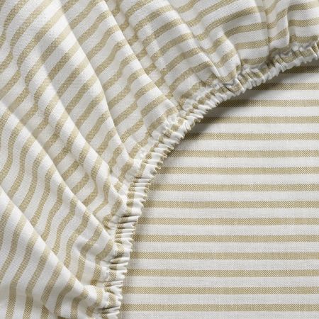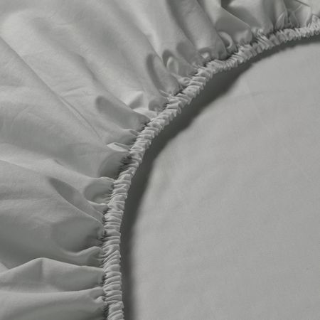 Натяжная серо-зеленая простыня ДВАЛА изготовлена из дышащей и поглощающей влагу хлопковой ткани, что обеспечивает ровную и комфортную температуру в течение всей ночи.