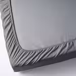 Натяжная серо-зеленая простыня ДВАЛА изготовлена из дышащей и поглощающей влагу хлопковой ткани, что обеспечивает ровную и комфортную температуру в течение всей ночи.