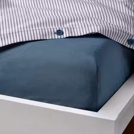 Натяжная простыня ДВАЛА изготовлена из дышащей и поглощающей влагу хлопковой ткани, что обеспечивает ровную и комфортную температуру в течение всей ночи.
