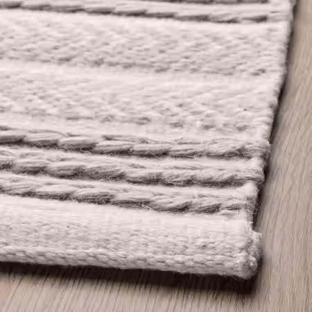 Безворсовый ковер в нежной меланжевой расцветке в бежевых тонах наполняет интерьер теплом и приятно ощущается под ногами.