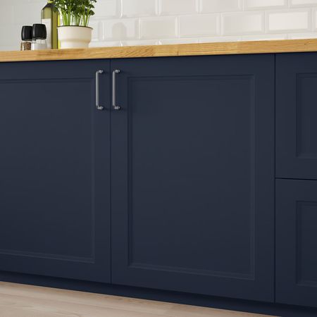 Кухонная филенчатая дверца АКСТАД с матовой синей поверхностью подойдет для интерьера и в современном, и в традиционном стиле.