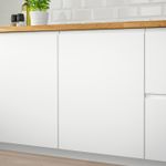 Гладкие матовые дверцы ВОКСТОРП с интегрированными ручками придадут открытый современный облик интерьеру кухни.