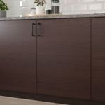 Можно дополнить темно-коричневыми накладными панелями, цоколями и декоративными карнизами АСКЕРСУНД под ясень.