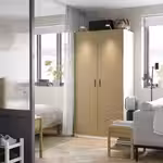 С этой дверцей из брашированного шпона ваш гардероб PAX будет прекрасно сочетаться с комодом, каркасом кровати и прикроватной тумбой TONSTAD.