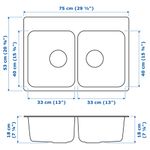 Двойная врезная мойка, 75×53 см, нержавеющая сталь IKEA LÅNGUDDEN ЛОНГУДДЕН включает в себя следующие материалы: