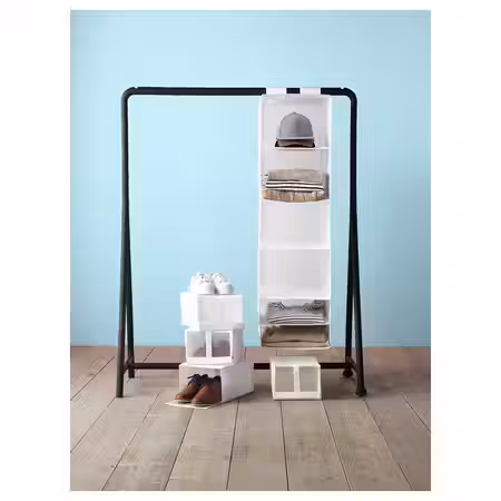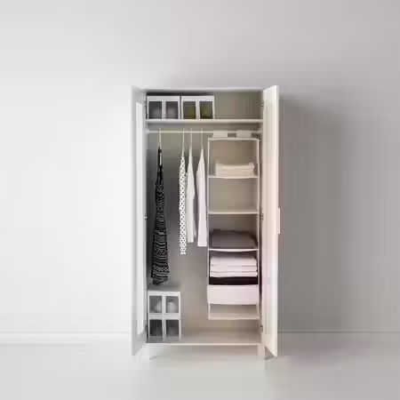 Ищите практичное решение для хранения одежды и обуви? Открытые модули системы ЭЛВАРЛИ легко адаптируются к различным потребностям хранения и высоте потолков, что позволяет использовать их в спальне, прихожей и даже гостиной. Эта система хранения продумана в каждой детали — от устойчивого алюминиевого каркаса до прочных полок из бамбука, которые легко установить.
