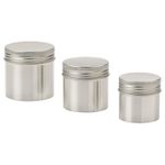 В этих компактных баночках удобно хранить ватные диски или заколки для волос.В набор входит: 3 емкости с крышкой (диам. 7 см, высота 7 см/диам. 8 см, высота 8 см/диам. 9 см, высота 9 см). Луженая сталь, Прозрачный лак