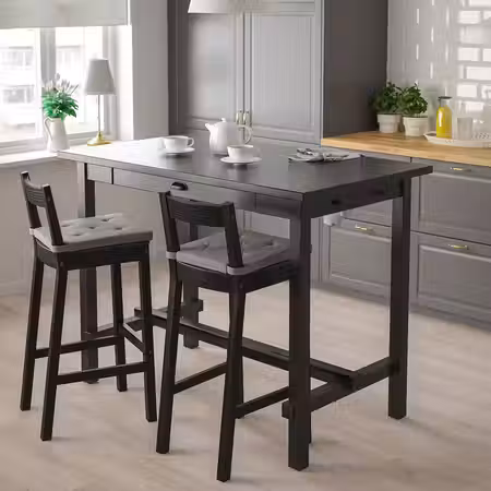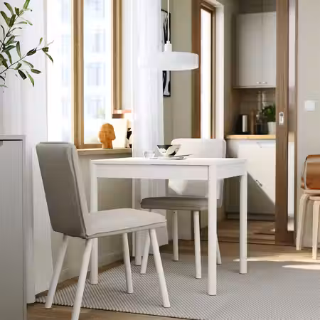 Два вкладные доски позволяют легко раздвинуть стол, чтобы усадить за него 4 человек вместо 2, и так же легко убрать их под столешницу, когда гости разошлись по домам.