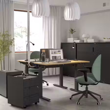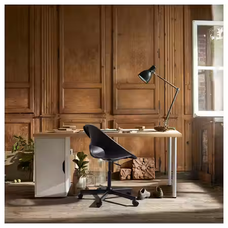 Письменный стол обеспечит достаточно места для работы и практичное хранение папок, блокнотов и других вещей, которые удобно иметь под рукой.