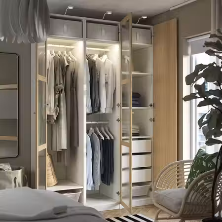 Открытые каркасы позволяют хранить все то, что вы часто используете, на виду и под рукой, а закрытый навесной шкаф идеально подходит для вещей, которые выглядят некрасиво и своим обликом только портят интерьер.