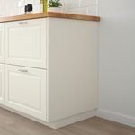 Выберите накладную панель, подходящую по дизайну к дверцам кухонных шкафов, или используйте контрастный вариант отделки панели.
