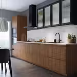 Для единообразия выберите накладную панель с такой же отделкой, что и кухонные фасады.