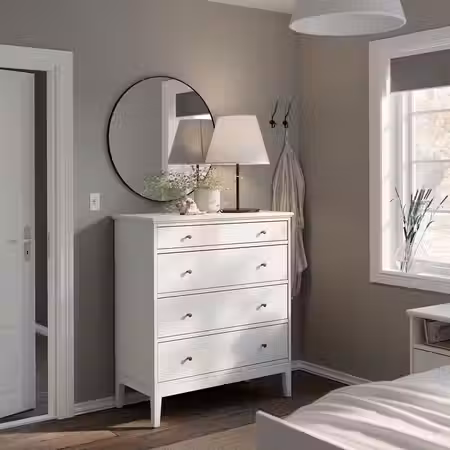 Лучшее решение, если вы любите, чтобы вещи лежали на своих местах и были скрыты от глаз. Здесь четыре выдвижных ящика двух разных размеров, в которые поместятся все предметы личной гигиены. А на столешницу можно положить всё