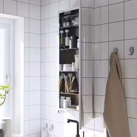 Неглубокий шкаф позволит эффективно использовать пространство стены.