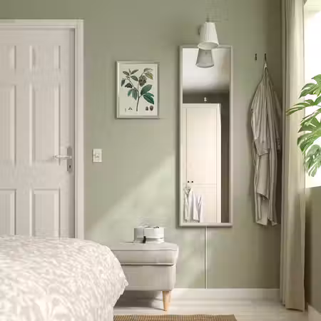 Зеркало на стене придает помещению глубину и делает интерьер более динамичным.