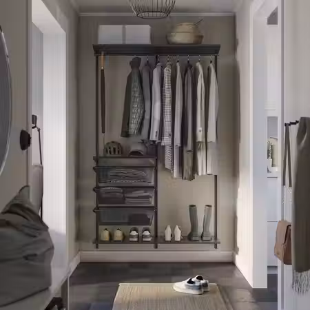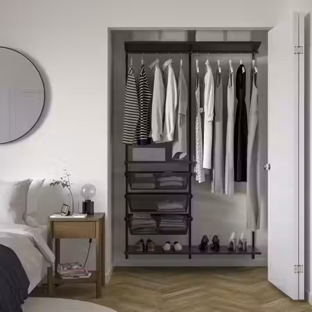 С помощью раздвижных дверей СКЮТТА вы сможете доработать имеющееся у вас решение для хранения, создать гардеробную или разделить комнату на две части.