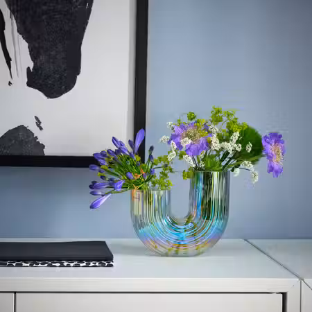 Засмотревшись на радугу, Лиза Хилланд придумала дизайн вазы РЭФФЕЛБЬЁРК с плавными очертаниями и мерцающей отделкой.